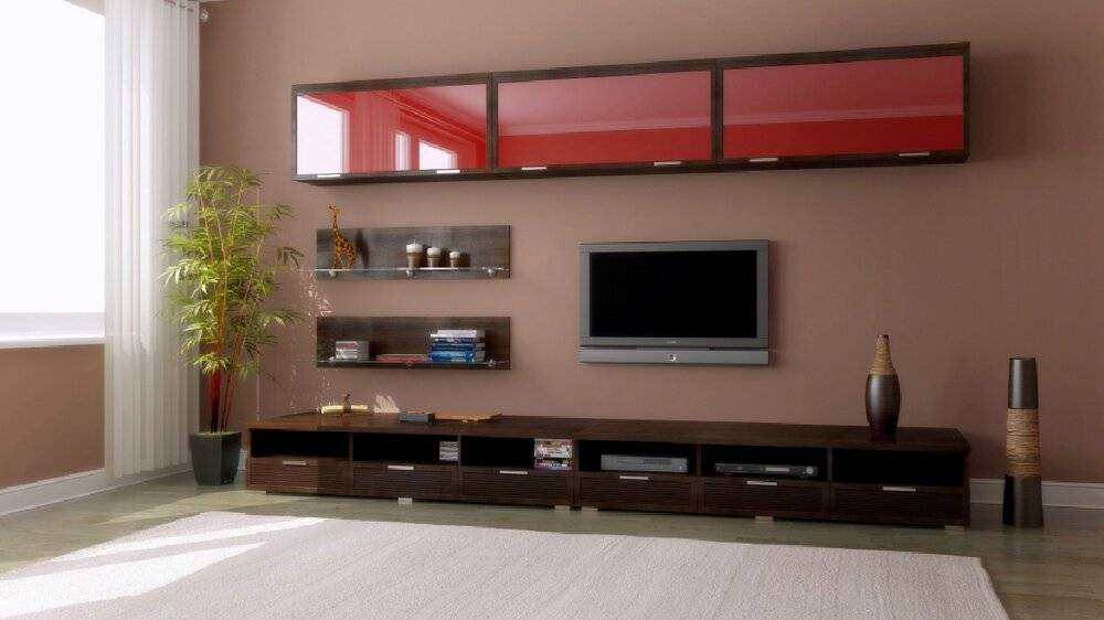 Выбирая стенку нужно продумать, каким образом, она будет крепиться. Будут ли отдельные подвесные элементы либо это будет каркасная, отдельно стоящая мини-стенка. Если модульные шкафы будут крепиться к стене, на стадии ремонта это место необходимо усилить. Если же мебель будет располагаться около стенки, выполненной из гипсокартона, то идеальным вариантом будет отдельно стоящая горка.