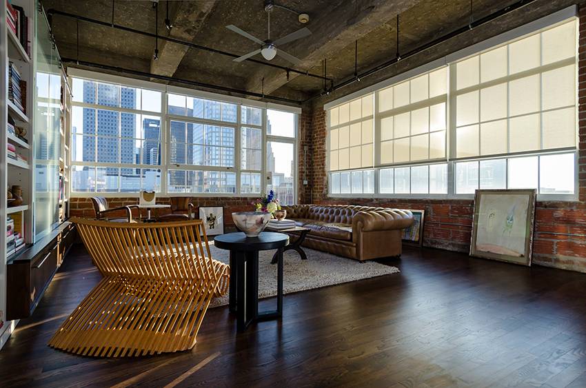- Характерная черта лофта – высокие потолки, незакрытые шторами больше окна (допустимы деревянные жалюзи и ставни).