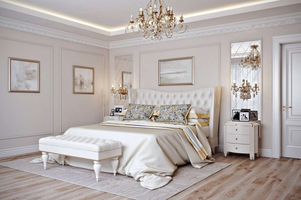 Спальня, выполненная в неоклассическом стиле, фото.