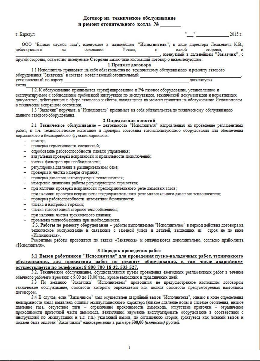 Договор на сервисное обслуживание газовых котлов является типовым документом и включает следующую информацию: