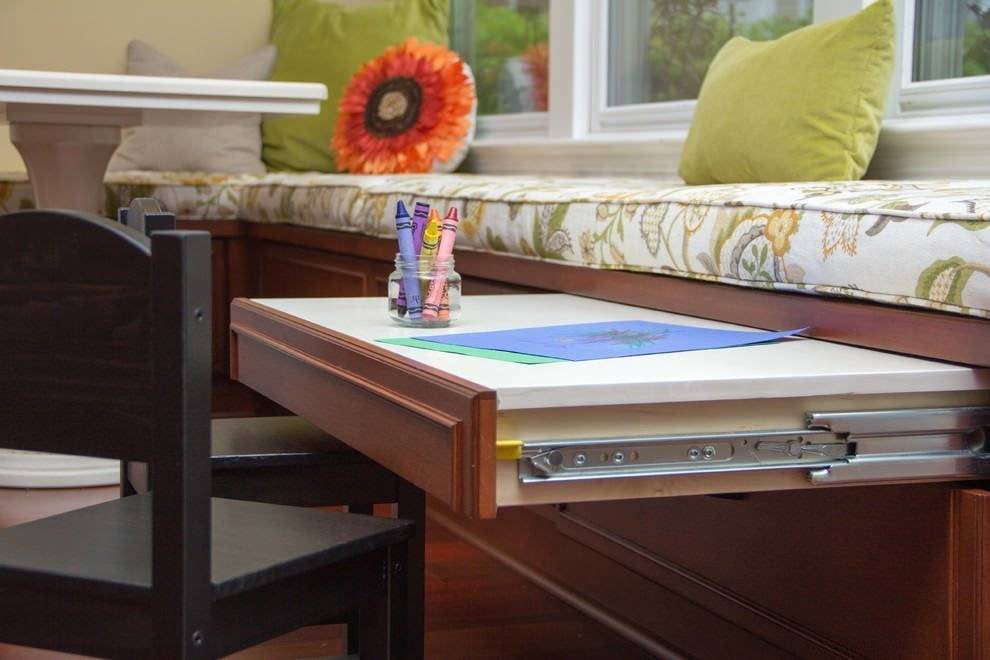 Кстати, не стоит забывать о еще одном положительном нюансе — ноги ребенка будут находиться рядом с батареей. Можно даже продумать подставку под нних. Зимой такой комфорт станет просто бесценным.