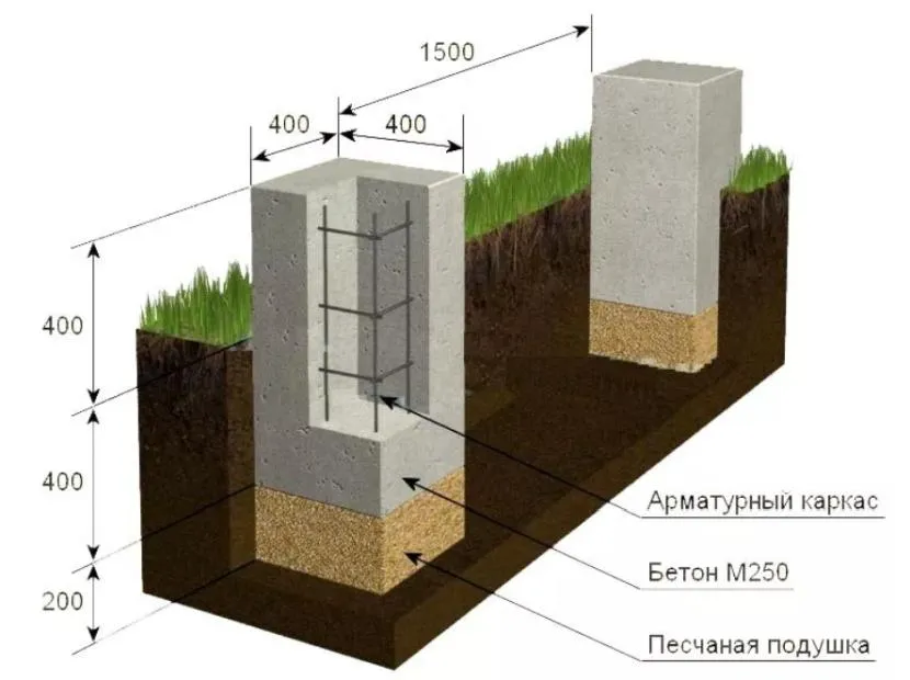 Размеры минимального сечения фундаментных столбов определаются их материалом: