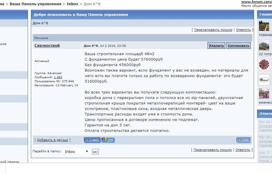 Я решил написать передставителям этой фирмы. В письме описал свое видение дома и параметры. Честно, я тогда не верил, что за такие деньги можно построить что-то добротное.