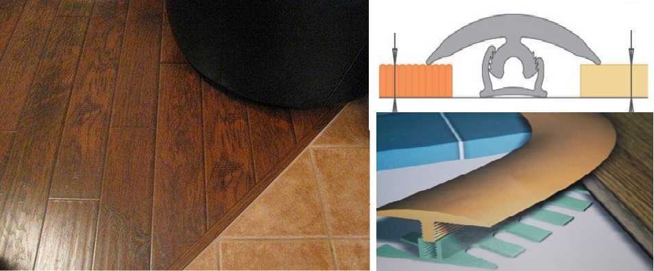 В этом случае порожки выполняют защитную функцию для краёв напольных материалов. Без этого элемента края материала быстро начинают отслаиваться, а в щелях скапливается грязь.