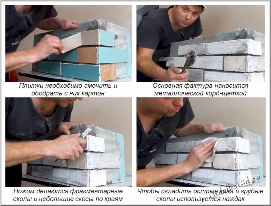 При использовании влагостойких гипсоволоконных плит необходимо подрезать изделия, удалив замки. Оставшиеся стороны смазывают клеем, после чего укладывают вплотную к стене необработанной стороной. Следующий лист фиксируется замком и клеем. Таким образом необходимо обработать всю поверхность. Затем в местах стыков нужно вкрутить саморезы с зенкующей шляпкой, которую следует утопить в материале. Все швы обрабатывают шпатлевкой, а после высыхания шлифуют.