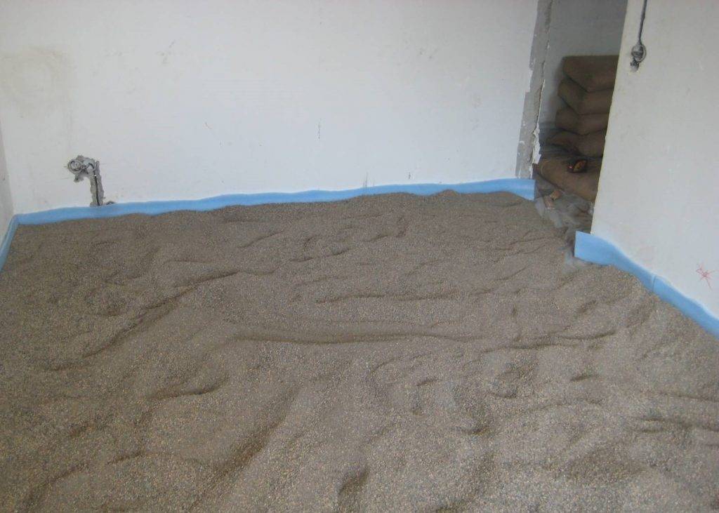 Слой засыпки зависит от степени неровности основания и требований по шумо- и теплоизоляции к данному помещению.