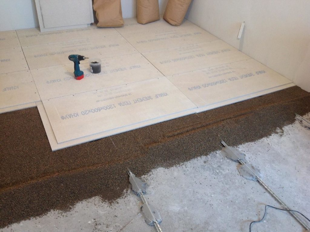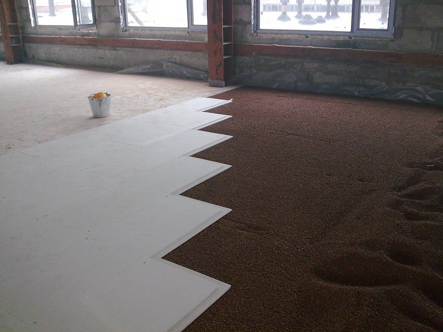 - Не допустимо применение крупнозернистого керамзита. Он значительно сокращает площадь соприкосновения с верхним листовым материалом, что в свою очередь может привести к продавливанию и деформации гипсоволокнистых листов.