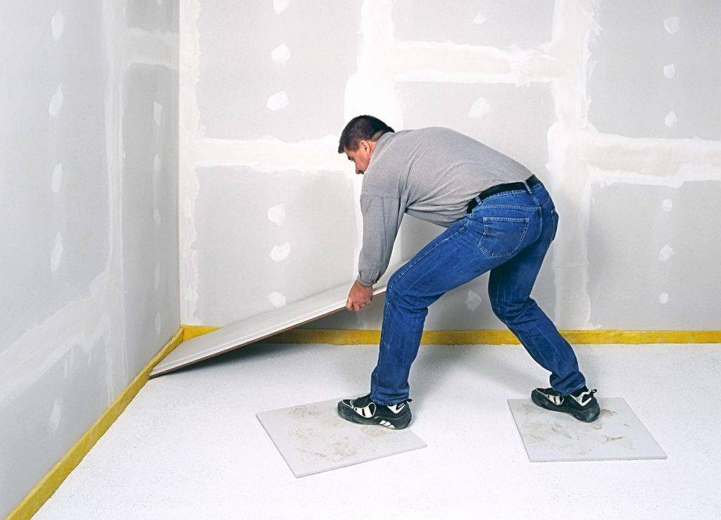 Поверхность пола очищается от мусора и грязи. Уборку поверхности лучше проводить сухим методом, разве что только слегка увлажнив для уменьшения количества поднимаемой пыли. Перед следующим этапом пол должен быть сухим и чистым.