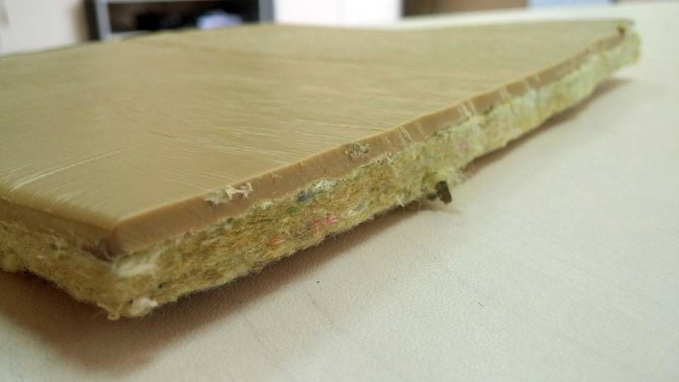 - Синтетические плиты. Изготавливаются из полиэфирных волокон. Благодаря легкому раскрою популярны при возведении каркасного жилья.