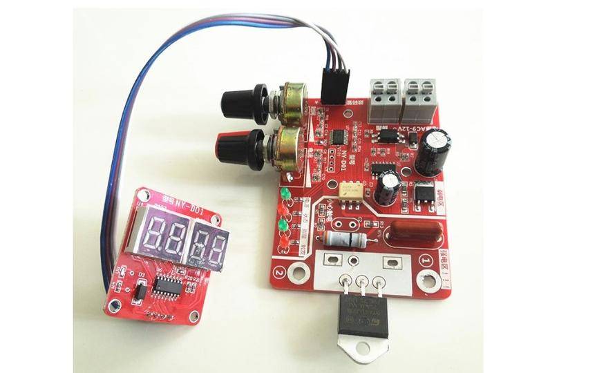 Плата управления позволяет выставить мощность импульса сварки и его длительность. Тиристор в комплекте на 100А.