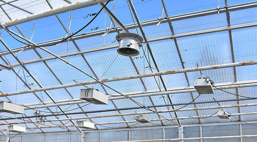 Во время постройки теплицы устанавливают систему воздушного обогрева с напольными или подвесными теплогенераторами.