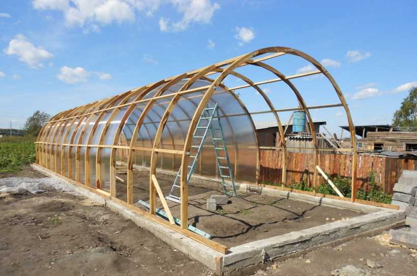 Деревянная теплица из поликарбоната на фундаменте из бруса