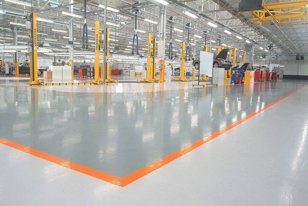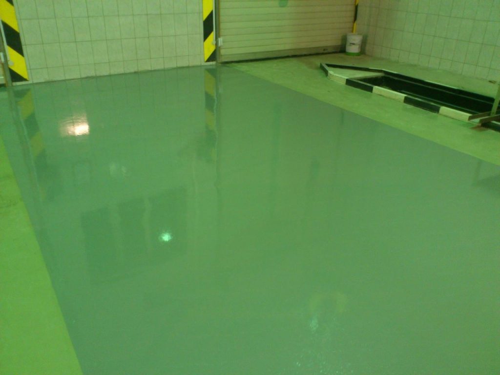 Именно эпоксидный пол создает глянцевую поверхность, напоминающую гладкость стекла. Надежная прочность позволяет применять его на промышленных производствах с интенсивными химическими и умеренными физическими нагрузками, так как точечные удары большой силы способны разрушить эпоксидный слой. Благодаря стойкости к истиранию покрытие используется даже на паркингах.