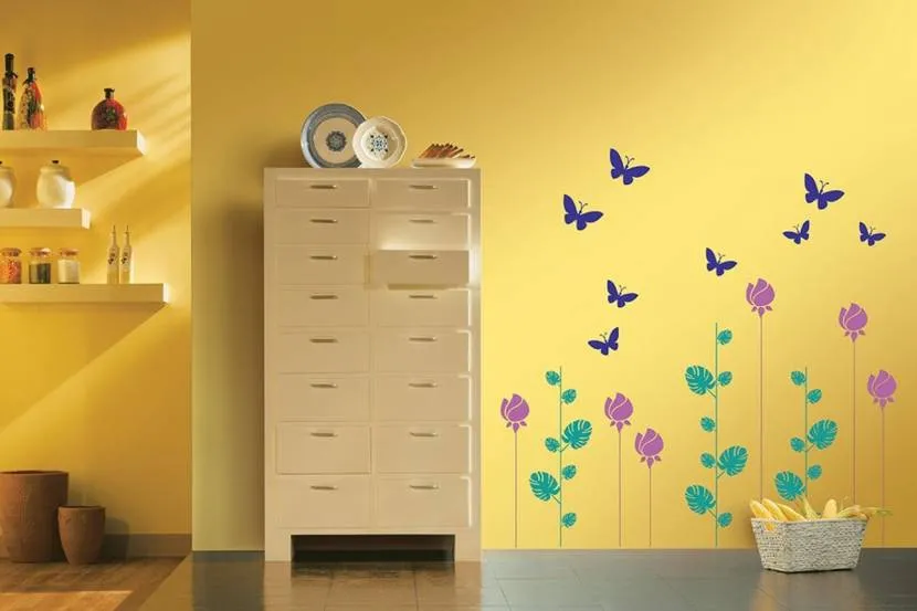 С помощью трафаретов можно декорировать не только стены. Ими расписывают мебель, пластик, обои, стеклянные поверхности. Для такого метода нанесения рисунка отлично подходит акриловая краска.