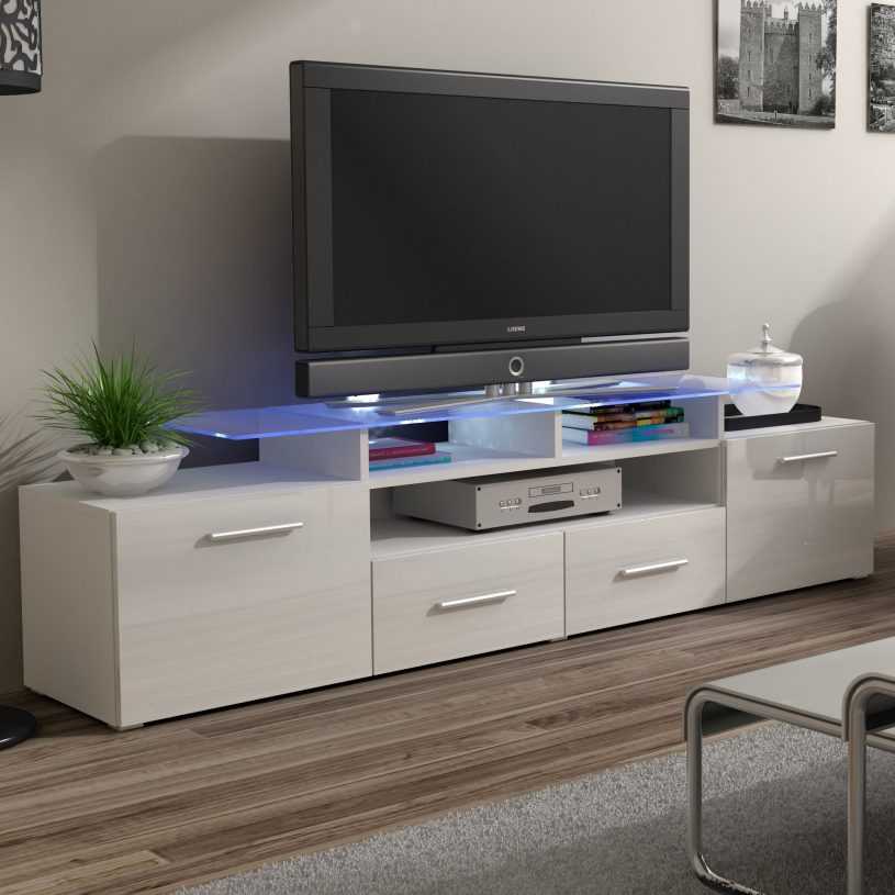 - Прямая — здесь название говорит само за себя, располагается вдоль стены и обычно очень вместительна. Возможны как практичные варианты, совмещающие в себе функции подставки под телевизор и шкафчика с большим количеством ящиков, так и броские дизайнерские решения — например широкие и длинные столешницы, занимающие большую часть комнаты и создающие оптическую иллюзию увеличения пространства — такие подставки идеально подходят под роскошный домашний кинотеатр с множеством колонок и дополнительной техники.