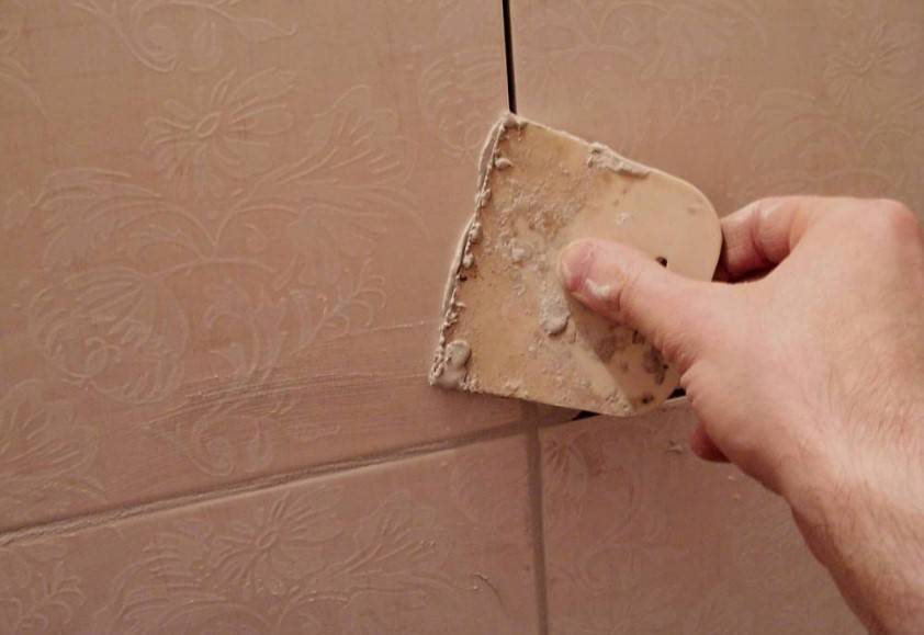 Следы затирки на плитке убираются сухой ветошью, так как мокрая тряпка или губка оставляют после себя трудноубираемые разводы. Через 3-4 часа после окончания работ, заполненные швы внимательно осматриваются. В местах, где были допущены пропуски или фуга провалилась, затирка втирается пальцами. После этого швы шлифуются губкой на основе поролона.