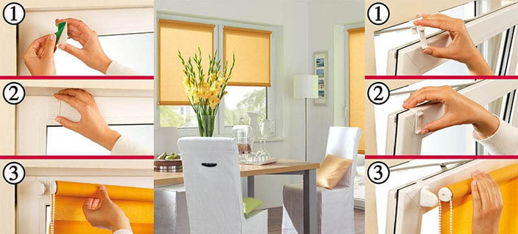 Установка рулонной шторы открытого типа на пластиковое окно без сверления