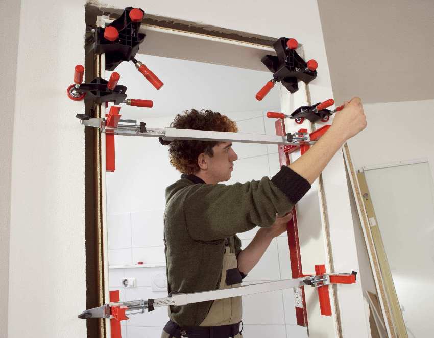 Зачастую чтобы навешать дверь, требуется предварительно собирать короб. Конструкция состоит из пары вертикальных и горизонтальных перекладин. Суть процедуры заключается в соединении их в единую прямоугольной формы конструкцию.