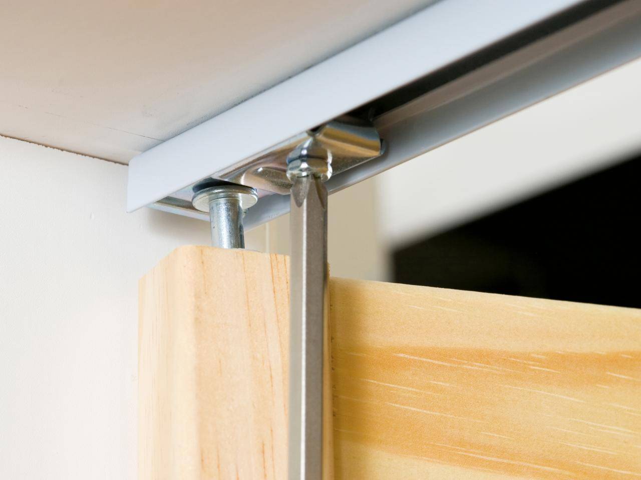 В верхней части короба устанавливается направляющая, по которой будут перемещаться каретки с бегунками. Перед тем как смонтировать направляющую, необходимо произвести точные замеры. Она должна располагаться таким образом, чтобы закрытая дверь находилась максимально близко к коробу, но при этом беспроблемно открывалась, не царапая и не задевая отдельных элементов.