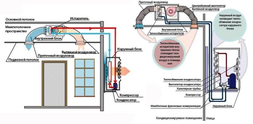 Сплит-системы состоят из испарительного блока и компрессора. Эти элементы соединены между собой трубками. Для монтажа внешнего блока или компрессора используется плоскость наружной стены, а испаритель размещается в помещении. В дорогих моделях климатического оборудования может присутствовать несколько внутренних блоков. Все они подключаются к одному компрессору.