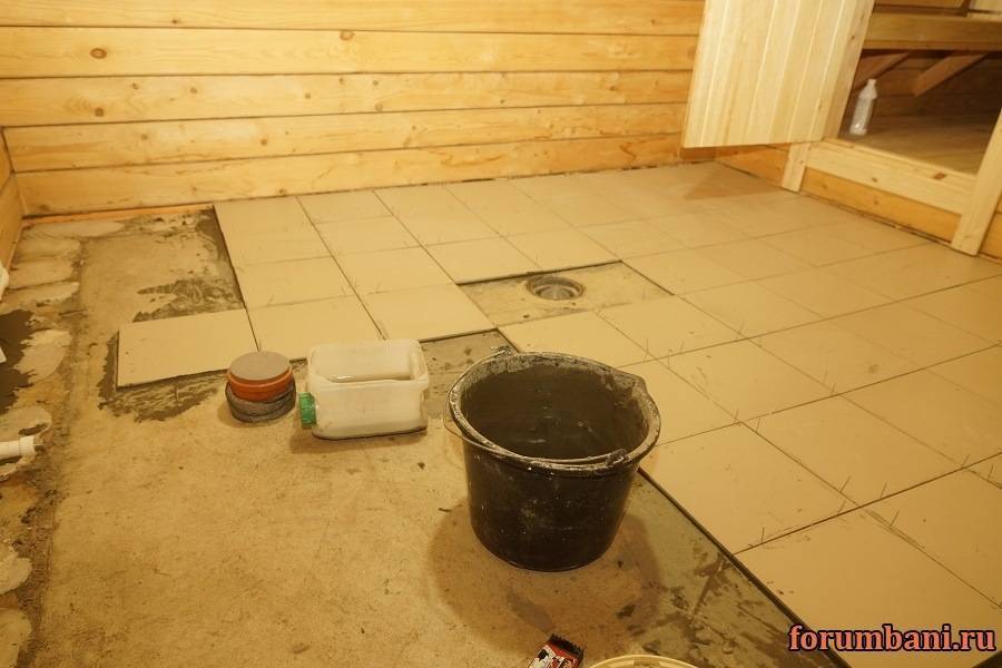 После того как утеплили пол, следует начать подготовку основания.На утеплитель кладут армирующую сетку. Здесь самое время не забыть оставить сливные отверстия, где они предусмотрены.