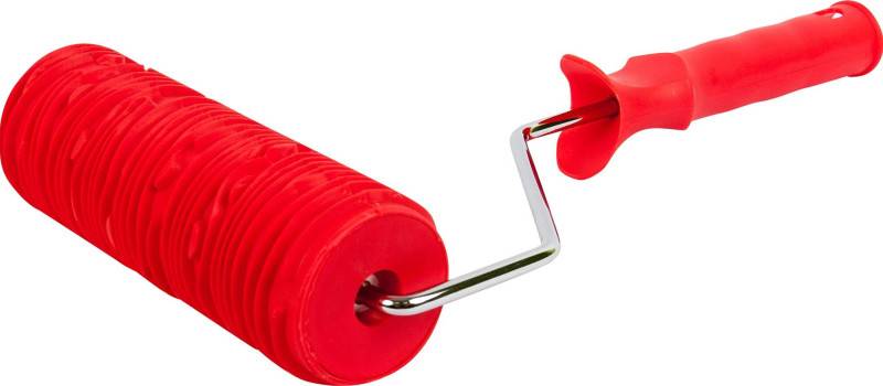 - Игольчатые. На нем установлены прорезиненные шипы. Такой инструмент предназначен для устранения воздушных пузырьков, которые могли остаться между слоями нанесенной краски. Этот инструмент используется при работе с вязкими красками.