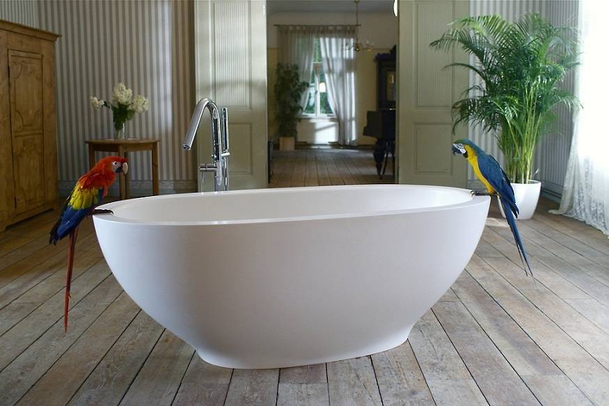 Такие ванны считаются образцом шика и эстетизма. Любые другие материалы не способны тягаться с этими по своим эксплуатационным характеристикам. Однако такое изделие весит невероятно много и стоит столько же, так как выпускается только под заказ. Кроме того, его нужно очень аккуратно транспортировать и монтировать – но это уже забота рабочих.