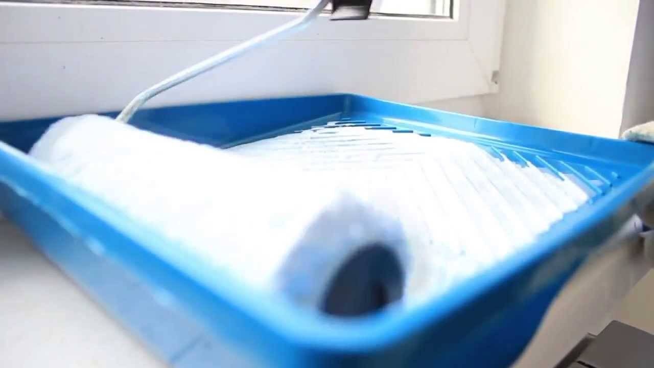 - Хорошо пропитать валик краской, несколько раз прокрутив его внутри лотка, чтобы лишняя краска стекла. Чем лучше пропитан валик, тем на большую квадратуру хватит краски.