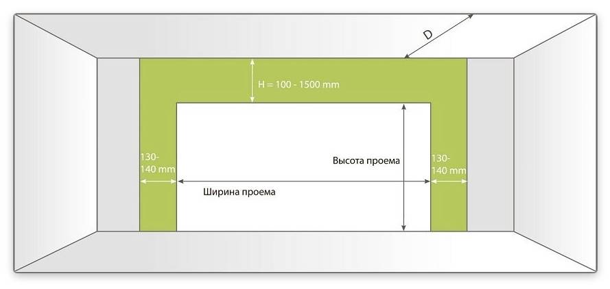 Нижнюю панель ставят к проему, таким образом, чтобы она зашла своим сторонами за стену с одинаковым расстоянием.