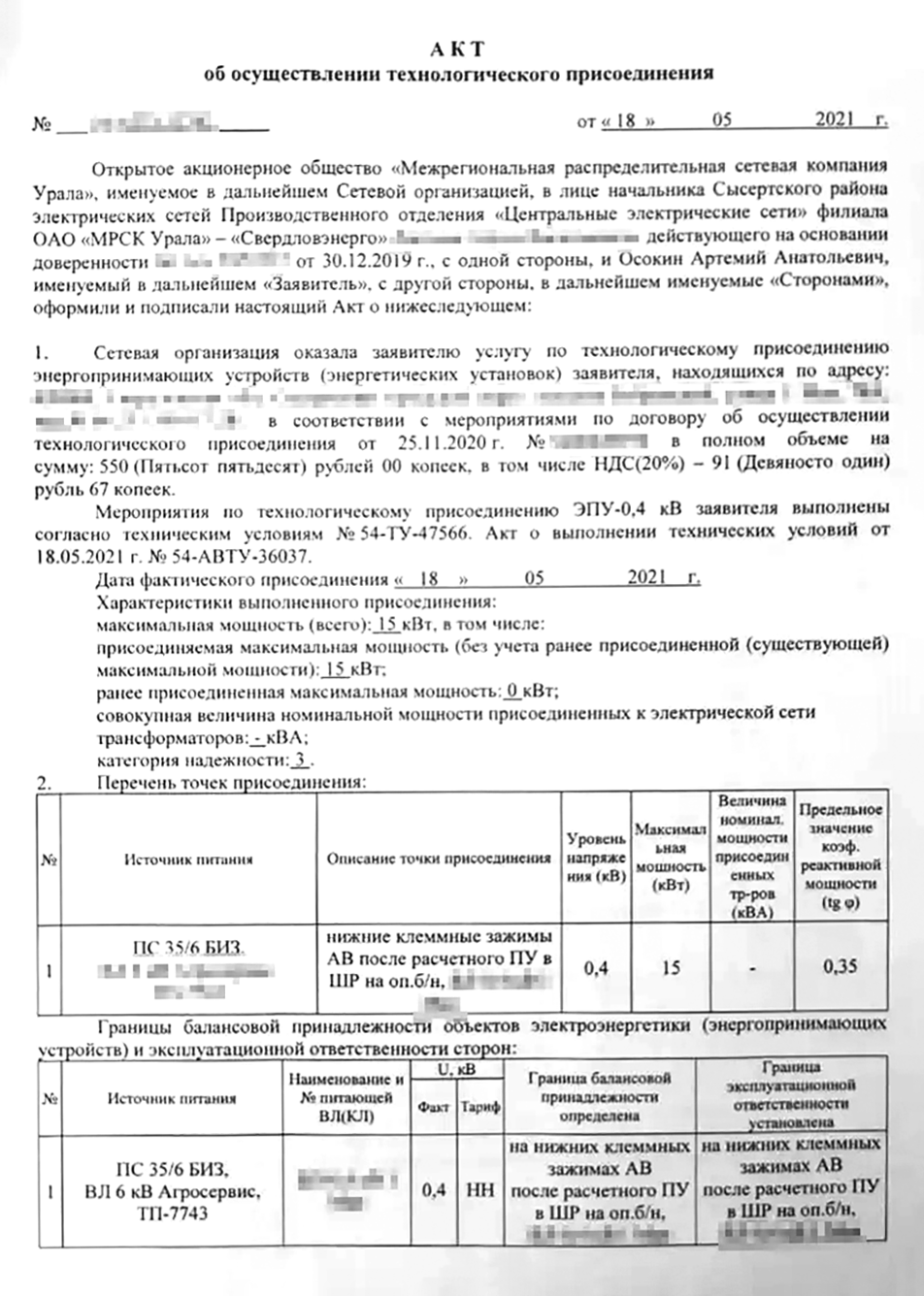Так выглядит акт о технологическом присоединении