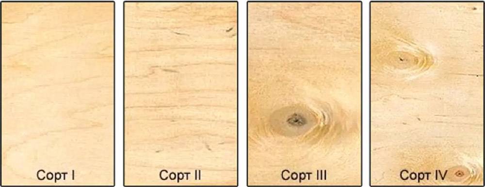 - По наличию в шпоне сучков и свилеватости различают четыре сорта, самым качественным и дорогим будет сорт под номером 1.