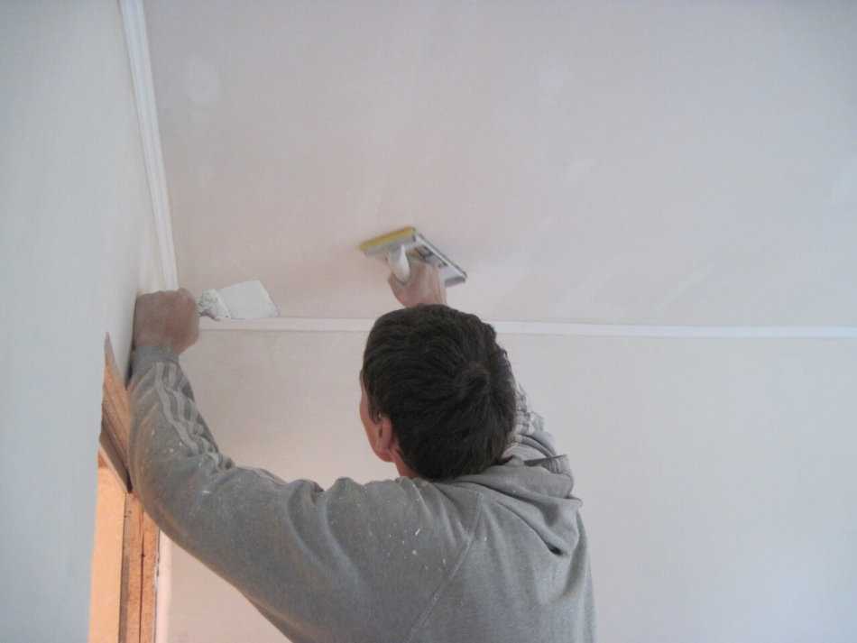 Предварительный этап (для крититически неровных поверхностей): штукатурка потолка