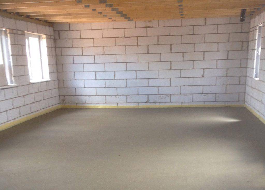 - До того как приступать к заливке стяжке, стены (перегородки) в помещении должны быть оштукатурены.