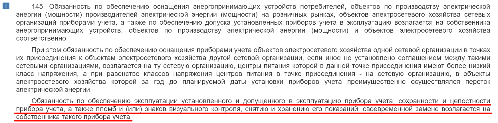 С потребителей снята ответственность за приобретение, установку и замену приборов учета электрической энергии