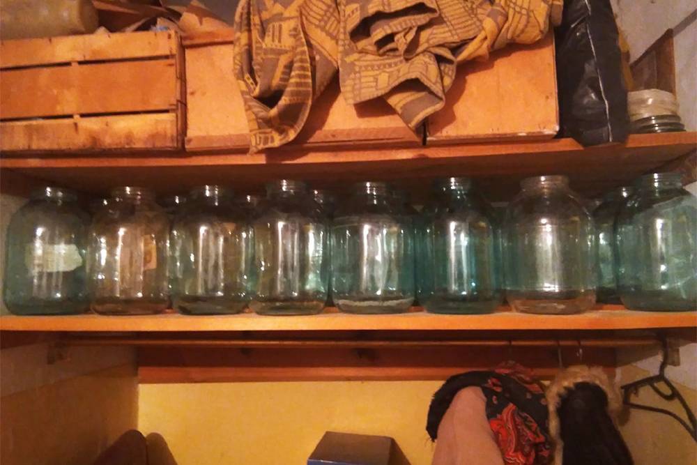 Под кроватью, столом и у окон мы нашли почти 200 стеклянных банок разного размера — от 0,5 до 3 л. Ночью я вывесила объявление о продаже банок: за трехлитровые просила по 10 Р, двухлитровые — по 5 Р, литровые — по 2 Р, за банки объемом 0,5—0,8 л — по 1 Р.