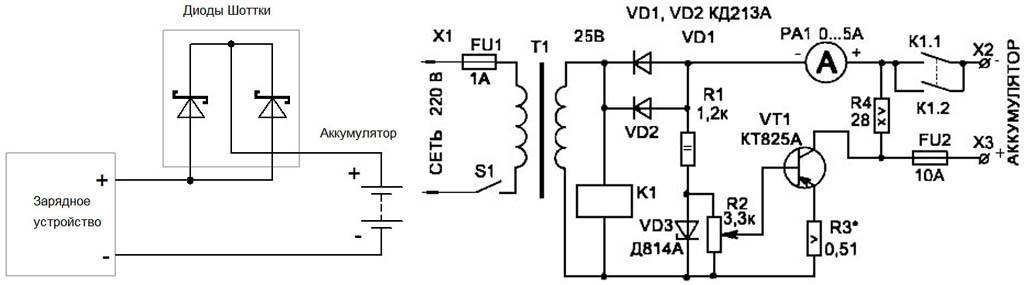 Схема простого зарядного устройства для автомобильного аккумулятора