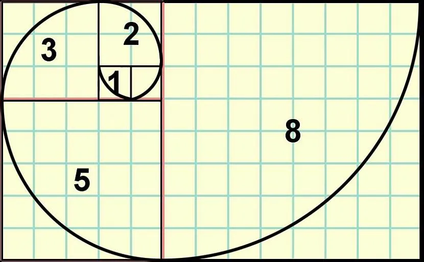 Что еще интересно, что если вы начнете делить прямоугольник с соотношением сторон 1,62 на квадрат и прямоугольник, вы получите снова прямоугольник с идеальными пропорциями, но меньшего размера. Если вы его снова разделите по тому же принципу, будет еще одна пара квадрат+прямоугольник со сторонами, соотношение которых будет соответствовать золотому сечению. И так до тех пор, пока вы сможете проводить деление. Но что еще интереснее, в это деление отлично вписывается ряд Фибоначчи, который имеет вид раскручивающейся спирали. Иллюстрация на рисунке выше.